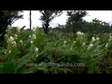 Indian Arrowroot or Chavar is an annual herb which can grow upto 50-100 cm high. The plant has perennial rhizomes with many hanging tubers. Oblong lance like leaves are up to half a meter long. Flowers occur in a spike 10-15 cm long, and are yellow or white. More prominent are the greenish white or pinkish white bracts. The yellow flowers, which possess a long peduncle, are borne on a central spike. The plant is native to India and is found mainly growing wild on the table land of the Mahabaleshwar plateau and neighbouring regions in forest areas with high annual rainfall. Hot moist conditions are essential requiring rainfall of upwards of 500 cm per annum characterises its natural habitat, though it may be grown on the banks of irrigation canals. Chavar is easily propagated by tuber cuttings, which are planted in raked soil at the beginning of the monsoon, frequently in arecanut plantations and on the banks of rivers and irrigation channels. It is often planted very densely to prevent soil erosion, in some areas up to 50 000 plants per hectare. <br /><br />Mahabaleshwar is the summer capital of Maharashtra at located about 120 km southwest of Pune and 285 km from Mumbai. Mahabaleshwar is a vast plateau measuring 150 km2 bound by valleys on all sides reaching a height of 1,438 m at its highest peak above sea level, known as Wilson/Sunrise Poippppppppppppppppnt. Mahabaleshwar comprises three villages: Malcolm Peth, Old "Kshetra" Mahabaleshwar and part of the Shindola village.<br /><br />Mahabaleshwar is the source of the Krishna River that flows across Maharashtra, Karnataka and Andhra Pradesh. The legendary source of the river is a spout from the mouth of a statue of a cow in the ancient temple of Mahadev in Old Mahabaleshwar. Legend has it that Krishna is Lord Vishnu himself as a result of a curse on the trimurtis by Savitri. Also, its tributaries Venna and Koyana are said to be Lord Shiva and Lord Brahma themselves. An interesting thing to notice is that 4 other rivers come out from the cow's mouth apart from Krishna and they all travel some distance before merging into Krishna. These rivers are the Koyana, Venna (Veni), Savitri, and Gayatri.<br /><br />Today, Mahabaleshwar is a popular holiday resort and honeymoon spot, and an important pilgrimage site for Hindus. It is the site of Mahabaleshwar Temple. Many tourists visit nearby Panchgani. After the construction of a new highway, it is only a five-hour drive from Mumbai. Mahabaleshwar is also known for the honey and strawberries produced here. One can visit strawberry farms to enjoy the real flavour of the fruit. It is said that the climate of Mahabaleshwar is ideal for Strawberries and Mulberries. One can also get a taste of "Strawberries with Cream" or "Mulberries with Cream".<br /><br />The Venna lake is one of the major tourist attractions of Mahabaleshwar. The lake is surrounded by trees on all sides. A late winter evening boat ride through the slight fog is well appreciated. Tourists can enjoy a boat ride over the lake or a horse ride next to the lake. A number of small eateries line the banks of the lake. The Mahabaleshwar city market and the S.T. bus stand is about 2KM from the lake and makes for a nice walk during the day. Most tour operators include the Venna lake in their tours. Most buses, private vehicles will stop at the Venna Lake on their way to Mahabaleshwar on request. With another popular and scenic hill resort Panchgani in close vicinity (about 20KM), most tourists often visit both places together. The 'Table-Land' phenomenon of nature at Panchgani is breath-taking. Mahabaleshwar is known for its "points", from which a person can stand and enjoy the entire scenery. There are more than 14 points in total, which provide unique view to the tourists. <br /><br />Source - Wikipedia<br /><br />This footage is part of the professionally-shot broadcast stock footage archive of Wilderness Films India Ltd., the largest collection of imagery from South Asia. The Wilderness Films India collection comprises of thousands of hours of high quality broadcast imagery, mostly shot on HDCAM 1080i High Definition, HDV and XDCAM. Write to us for licensing this footage on a broadcast format, for use in your production! We are happy to be commissioned to film for you or else provide you with broadcast crewing and production solutions across South Asia. We pride ourselves in bringing the best of India and South Asia to the world... Reach us at wfi @ vsnl.com and admin@wildfilmsindia.com.
