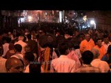 Portable human lamp holders at the Maha Shivratri procession in Varanasi