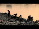 Young boys swim in the Yamuna river in Delhi city.<br /><br />The Yamuna, sometimes called Jamuna or Jumna, is the largest tributary river of the Ganges (Ganga) in northern India. It crosses several states, Uttarakhand, Haryana and Uttar Pradesh, passing by Himachal Pradesh and later Delhi, and meets several of its tributaries on the way, including Tons, its largest and longest tributary in Uttarakhand, Chambal, which has its own large basin, followed by Sindh, the Betwa, and Ken. Most importantly it creates the highly fertile alluvial, Yamuna-Ganges Doab region between itself and the Ganges in the Indo-Gangetic plain. Nearly 57 million people depend on the Yamuna waters. The source of Yamuna lies in the Yamunotri Glacier at a height 6,387 metres, on the south western slopes of Banderpooch peaks, which lie in the Mussoorie range of Lower Himalayas, in the Uttarkashi district, Uttarakhand, north of Haridwar. Yamunotri temple, a shrine dedicated to the goddess, Yamuna is one of the holiest shrines in Hinduism, and part of the Chota Char Dham Yatra circuit. <br /><br />In 1909 the waters of the Yamuna were distinguishable as "clear blue", as compared to the silt-laden yellow of the Ganges. However, due to high density population growth and rapid industrialization today Yamuna is one of the most polluted rivers in the world, especially around New Delhi, the capital of India, which dumps about 58% of its waste into the river. New Delhi generates 1,900 million litre per day (MLD) of sewage. Though numerous attempts have been made to process it, the efforts have proven to be futile. Although the government of India has spent nearly $500 million to clean up the river, the Yamuna continues to be polluted with garbage while most sewage treatment facilities are underfunded or malfunctioning. In addition, the water in this river remains stagnant for almost nine months in a year, aggravating the situation. <br /><br />Delhi alone contributes around 3,296 MLD of sewage in the river. The government of India over the next five years has prepared plans to rebuild and repair the sewage system and the drains that empty into the river. To address river pollution, certain measures of river cleaning have been taken by the Government's Ministry of Environment and Forests in twelve towns of Haryana, eight towns of Uttar Pradesh, and Delhi, under the Yamuna Action Plan (YAP) which has been implemented since 1993 by the National River Conservation Directorate (NRCD) of the Ministry of Environment and Forests. The Japan Bank for International Cooperation is participating in the Yamuna Action Plan in 15 of the above 21 towns (excluding 6 towns of Haryana included later on the direction of Supreme Court of India) with soft loan assistance of 17.773 billion Japanese Yen (Rs. 700 crore INR) while the Government of India is providing the funds for the remaining 6 towns added later. In 2007 the Indian government's plans to repair sewage lines were predicted to improve the water quality of the river 90% by the year 2010.<br /><br />Source: Wikipedia<br /><br />This footage is part of the professionally-shot broadcast stock footage archive of Wilderness Films India Ltd., the largest collection of HD imagery from South Asia. The Wilderness Films India collection comprises of tens of thousands of hours of high quality broadcast imagery, mostly shot on HDCAM 1080i High Definition, HDV and XDCAM. Write to us for licensing this footage on a broadcast format, for use in your production! We are happy to be commissioned to film for you or else provide you with broadcast crewing and production solutions across South Asia. We pride ourselves in bringing the best of India and South Asia to the world... Reach us at wfi @ vsnl.com and admin@wildfilmsindia.com.