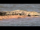 National Chambal Sanctuary, also called the National Chambal Gharial Wildlife Sanctuary, is a 5,400 km2 (2,100 sq mi) tri-state protected area in northern India for the critically endangered gharial (small crocodiles), the red-crowned roof turtle and the endangered Ganges river dolphin. Located on the Chambal River near the tripoint of Rajasthan, Madhya Pradesh and Uttar Pradesh, it was first declared in Madhya Pradesh in 1978 and now constitutes a long narrow eco-reserve co-administered by the three states. Within the sanctuary the pristine Chambal River cuts through mazes of ravines and hills with many sandy beaches. The sanctuary is protected under India's Wildlife Protection Act of 1972. The sanctuary is administered by the Department of Forest under the Project Officer with headquarters at Morena, Madhya Pradesh.<br /><br />The Critically endangered Gharial crocodile and the Red-crowned roof turtle live here, and together with the endangered Ganges River Dolphin are the keystone species of the sanctuary. Other large threatened inhabitants of the sanctuary include Muggar crocodile, Smooth-coated Otter, Striped Hyaena and Indian Wolf. Chambal supports 8 of the 26 rare turtle species found in India, including Indian narrow-headed softshell turtle, Three-striped roof turtle and Crowned river turtle. Other reptiles who live here are: Indian flapshell turtle, Soft Shell turtle, Indian roofed turtle, Indian tent turtle and Monitor lizard.<br /><br />There are many nature watching opportunities available for the visitors to the National Chambal Sanctuary. The best opportunities for sighting and photography of Gharial and Dolphins can be had by hiring a boat with experienced driver and guide, available at several points along the river. A boat excursion will also offer many good viewpoints for photography of water and shore birds and unique landscapes. Walking trails in the ravines and along the river offer opportunities for close observation of the wide variety of plants and animals in the Sanctuary. There are public vehicle entry points to Chambal Sanctuary at Pinahat, Nandagon Ghat, Sehson and Bharch. Boating and visiting arrangements can be made with the help of the Wildlife Conservator Office, at Kota.<br /><br />Visitors may explore Ater Fort, a beautiful but dilapidated landmark and historical site near Ater town, 35 km from Bhind. The fort was built by the Bhadauria kings Badan Singh, Maha Singh and Bakhat Singh in 1664-1698. The fort is situated on the banks of the Chambal River and can be reached by bus, jeep or boat.<br /><br />There are Forest Rest Houses at Bah and Chakkar Nagar and Public Works Department Inspection Bungalows at Bah and Pinahat. There are several commercial hotels and Eco Lodges at Agra, Etawah and Bah.[3] The nearest airport is at Agra. The nearest railway station is at Agra. Agra and Mathura are major rail junctions with a number of trains from all over the country. Bharatpur, Ranthambhor National Park (with change at Bharatpur), Bandhavgarh National Park (Katni, Umaria) and Kanha National Park (Jabalpur) are all well serviced by the rail network from Agra.<br /><br />Source: Wikipedia<br /><br />This footage is part of the professionally-shot broadcast stock footage archive of Wilderness Films India Ltd., the largest collection of HD imagery from South Asia. The Wilderness Films India collection comprises of tens of thousands of hours of high quality broadcast imagery, mostly shot on HDCAM 1080i High Definition, HDV and XDCAM. Write to us for licensing this footage on a broadcast format, for use in your production! We are happy to be commissioned to film for you or else provide you with broadcast crewing and production solutions across South Asia. We pride ourselves in bringing the best of India and South Asia to the world... Reach us at wfi @ vsnl.com and admin@wildfilmsindia.com.
