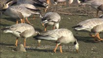 Flocks of Bar-headed Geese and waterfowl at Tehla jheel, Sariska National Park, Rajasthan, India. February 2013.
