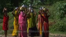 Women from Bareilly village carrying pots filled with water..<br /><br />Bareilly is a prominent city in Bareilly district in the northern Indian state of Uttar Pradesh. Standing on the Ramganga river, it is the capital of the Bareilly division and the geographical region Rohilkhand. It is located 252 kilometres (157 mi) north of the state capital, Lucknow and 250 kilometres (155 mi) east of the national capital New Delhi. Bareilly is a centre for the manufacturing of furniture and for trade in cotton, cereal and sugar. The status of the city grew when its name was included in the "Counter Magnets" of the National Capital Region (NCR), a list that also includes Hissar, Patiala, Kota and Gwalior. Bareilly historically was also called Sanjashya, where the Buddha descended from Tushita (heaven) onto the earth. This fast-growing city is also known as Bans-Bareilly. Although Bareilly is a production center for cane (bans) furniture, the name Bans Bareilly is not derived from its big bans market. It is named after two princes, Bansaldev and Baraldev, sons of Jagat Singh Katehriya who founded the city in 1537. It is also known for the Ala Hazrat Dargah. Entertainment and performing arts<br /><br />The city has many arts and cultural organizations, with art galleries and theaters all around the city. The 'Craft Fair' organized each year at YugVeena Library helps artists get recognition. Strongly influenced by the city's immigrants from nearby regions, Bareilly has a mix of different cultures including Brij culture (of Mathura), Awadhi culture (of Lucknow), Pahaari culture of Kumaun region (Uttrakhand) and Harayanvi Culture (of North-West Uttar Pradesh). Bareilly also hosts Fashion Shows to demonstrate the area's unique style.<br /><br />Source: Wikipedia<br /><br />This footage is part of the professionally-shot broadcast stock footage archive of Wilderness Films India Ltd., the largest collection of HD imagery from South Asia. The Wilderness Films India collection comprises of tens of thousands of hours of high quality broadcast imagery, mostly shot on HDCAM 1080i High Definition, HDV and XDCAM. Write to us for licensing this footage on a broadcast format, for use in your production! We are happy to be commissioned to film for you or else provide you with broadcast crewing and production solutions across South Asia. We pride ourselves in bringing the best of India and South Asia to the world... Reach us at wfi @ vsnl.com and admin@wildfilmsindia.com.