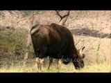 The gaur (Bos gaurus), also called Indian bison, is a large bovine native to South Asia and Southeast Asia. The species is listed as vulnerable on the IUCN Red List since 1986 as the population decline in parts of the species' range is likely to be well over 70% over the last three generations. Population trends are stable in well-protected areas, and are rebuilding in a few areas which had been neglected.The word gaur is pronounced.The gaur is the largest species of wild cattle, bigger than the African buffalo, the extinct aurochs, and wild water buffalo. The domesticated form of the gaur, Bos frontalis, is called gayal or mithun.<br /><br />This footage is part of the professionally-shot broadcast stock footage archive of Wilderness Films India Ltd., the largest collection of imagery from South Asia. The Wilderness Films India collection comprises of thousands of hours of high quality broadcast imagery, mostly shot on HDCAM 1080i High Definition, HDV and XDCAM. Write to us for licensing this footage on a broadcast format, for use in your production! We are happy to be commissioned to film for you or else provide you with broadcast crewing and production solutions across South Asia. We pride ourselves in bringing the best of India and South Asia to the world... Reach us at wfi @ vsnl.com and admin@wildfilmsindia.com.