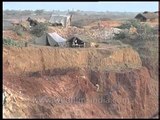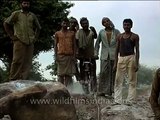 Stone quarrying in the Aravalli hills in Delhi, India