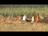 Farmers working in the paddy fields. This was shot on the way from Meerut to Delhi.<br /><br />A paddy field is a flooded parcel of arable land used for growing rice and other semiaquatic crops. Paddy fields are a typical feature of rice farming in east, south and southeast Asia. Paddies can be built into steep hillsides as terraces and adjacent to depressed or steeply sloped features such as rivers or marshes. They can require a great deal of labor and materials to create, and need large quantities of water for irrigation. Flooded paddies provide an ideal environment for rice cultivation and discourage the growth of many weeds. The Oxen and water buffalo are one of the most important working animals adapted for life in wetlands, and is used extensively in paddy field farming.<br /><br />Source - Wikipedia<br /><br />This footage is part of the professionally-shot broadcast stock footage archive of Wilderness Films India Ltd., the largest collection of imagery from South Asia. The Wilderness Films India collection comprises of thousands of hours of high quality broadcast imagery, mostly shot on HDCAM 1080i High Definition, HDV and XDCAM. Write to us for licensing this footage on a broadcast format, for use in your production! We are happy to be commissioned to film for you or else provide you with broadcast crewing and production solutions across South Asia. We pride ourselves in bringing the best of India and South Asia to the world... Reach us at wfi @ vsnl.com and admin@wildfilmsindia.com