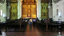 The Basilica of Bom Jesus or Borea Jezuchi Bajilika (Portuguese: Basílica do Bom Jesus) is located in Goa, India, and is a UNESCO World Heritage Site. The basilica holds the mortal remains of St. Francis Xavier. The church is located in Old Goa, which was the capital of Goa in the early days of Portuguese rule. 'Bom Jesus' (literally, 'Good (or Holy) Jesus') is the name used for the infant Jesus. The Jesuit church is India's first minor basilica, and is considered to be one of the best examples of baroque architecture in India. <br /><br />This is one of the oldest churches in Goa, as well as in India. The floor is of marble inlaid with precious stones. Apart from the elaborate gilded altars, the interior of the church is simple. The church also holds paintings of scenes taken from the life of St. Francis Xavier. The mausoleum, on the top of which is placed the silver casket with the body of St. Francis Xavier (1696), was the gift of the last of the Medicis, Cosimo III, the Grand Duke of Tuscany.<br /><br />The mausoleum was designed by the 17th-century Florentine sculptor Giovanni Battista Foggini. It took ten years to complete. The casket containing his body is made of silver. The holy relics of the saint are displayed every ten years during the anniversary of the saint's death. His liturgical feast is the third of December. On the upper level, overlooking the tomb, is the Bom Jesus Basilica Art Gallery, containing the works of the Goan surrealist painter, Dom Martin. The Basilica of Bom Jesus is more than 400 years old and is open to the public everyday. The body of St. Francis Xavier is kept in a well-decorated casket, which can be seen in the photographs below. Solemn exhibitions of the 'body' are held every ten years. Some photos taken inside the church are attached for better understanding of the art work of that time. These art works are called "murals".<br /><br />Source: Wikipedia<br /><br />This footage is part of the professionally-shot broadcast stock footage archive of Wilderness Films India Ltd., the largest collection of imagery from South Asia. The Wilderness Films India collection comprises of thousands of hours of high quality broadcast imagery, mostly shot on HDCAM 1080i High Definition, HDV and XDCAM. Write to us for licensing this footage on a broadcast format, for use in your production! We are happy to be commissioned to film for you or else provide you with broadcast crewing and production solutions across South Asia. We pride ourselves in bringing the best of India and South Asia to the world... Reach us at wfi @ vsnl.com and admin@wildfilmsindia.com