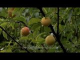 Green plums (soon to turn bright red or plum!) ripening on a tree in Landour, Uttarakhand, 20th May 2012. It's a windy day and the tree is swaying wildlife in the wind...<br /><br />This footage is part of the professionally-shot broadcast stock footage archive of Wilderness Films India Ltd., the largest collection of imagery from South Asia. The Wilderness Films India collection comprises of thousands of hours of high quality broadcast imagery, mostly shot on HDCAM 1080i High Definition, HDV and XDCAM. Write to us for licensing this footage on a broadcast format, for use in your production! We are happy to be commissioned to film for you or else provide you with broadcast crewing and production solutions across South Asia. We pride ourselves in bringing the best of India and South Asia to the world... Reach us at wfi @ vsnl.com and admin@wildfilmsindia.com.