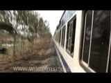 Traveling towards Dimapur, Nagaland by Shatabdi Express, from Guwahati, Assam.<br /><br />Shatabdi Express trains are a series of fast (called superfast in India) passenger trains operated by Indian Railways to connect Metro cities with other cities important for tourism, pilgrimage or business. Shatabdi Express are day-trains and they return to the station of origin the same day.<br /><br />The Shatabdis are among the fastest trains in India and the Indian Railways considers them as prestigious. The Shatabdi Express trains run over short to medium distances while the Rajdhani Expresses are long-distance trains connecting the nation's capital New Delhi to capitals of states. Both series of trains have a regular speed of about 140 km/h (87 mph). The 12001 Bhopal Shatabdi express, however, runs at a peak speed of 160 km/h (99 mph), which makes it the fastest train in India.<br /><br />Source: Wikipedia<br /><br />This footage is part of the professionally-shot broadcast stock footage archive of Wilderness Films India Ltd., the largest collection of imagery from South Asia. The Wilderness Films India collection comprises of thousands of hours of high quality broadcast imagery, mostly shot on HDCAM 1080i High Definition, HDV and XDCAM. Write to us for licensing this footage on a broadcast format, for use in your production! We are happy to be commissioned to film for you or else provide you with broadcast crewing and production solutions across South Asia. We pride ourselves in bringing the best of India and South Asia to the world... Reach us at wfi @ vsnl.com and admin@wildfilmsindia.com.