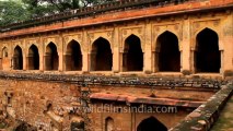 The square domed tomb has an arcaded entrance in eachof its four sides. Blind arches provide relief on the facade and a sixteen sided blind arcade provides the springing point for the dome. Thebuilding has split with cracks through the centers of each of the four sides; these had to be carefully stitched back together using traditional materials and techniques.<br /><br />This footage is part of the professionally-shot broadcast stock footage archive of Wilderness Films India Ltd., the largest collection of imagery from South Asia. The Wilderness Films India collection comprises of thousands of hours of high quality broadcast imagery, mostly shot on HDCAM 1080i High Definition, HDV and XDCAM. Write to us for licensing this footage on a broadcast format, for use in your production! We are happy to be commissioned to film for you or else provide you with broadcast crewing and production solutions across South Asia. We pride ourselves in bringing the best of India and South Asia to the world... Reach us at wfi @ vsnl.com and admin@wildfilmsindia.com.