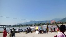 This is the clam side of the Godaveri river just before it turns into a waterfall. The Dudhsagar Waterfalls or Dabdabba falls are located at the outskirts of Nashik, Maharashtra (India), just close to the Someshwar temple. The remarkable fact about this lovely falls is its creamy white water that earned it the pretty name "Dudhsagar" meaning the ocean of milk. The Dudhsagar Waterfalls are 10 meters long and the water is milky white. The waterfall becomes more beautiful and worth visit after the monsoon season as there is ample water in the falls. <br /><br />The waterfall is a part of the river Godaveri which is very much part of the heritage and tradition of the Hindu belief. There are many places in the banks of the river where small temples of Ram or Hanuman are built.<br /><br />Source: Nasik Directory<br /><br />This footage is part of the professionally-shot broadcast stock footage archive of Wilderness Films India Ltd., the largest collection of imagery from South Asia. The Wilderness Films India collection comprises of thousands of hours of high quality broadcast imagery, mostly shot on HDCAM 1080i High Definition, HDV and XDCAM. Write to us for licensing this footage on a broadcast format, for use in your production! We are happy to be commissioned to film for you or else provide you with broadcast crewing and production solutions across South Asia. We pride ourselves in bringing the best of India and South Asia to the world... Reach us at wfi @ vsnl.com and admin@wildfilmsindia.com.<br /><br />godavari godhavari godaveri