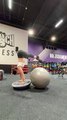 Woman Performs Handstand on Balance Ball Using Yoga Ball for Support