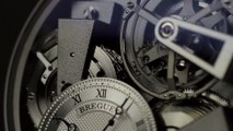 Breguet 5377 Extra-thin Self-winding Tourbillon. <br /> <br />Classique "Grande Complication" wristwatch in 18-carat rose gold. <br />Extra-thin 3mm self-winding movement, calibre 581DR, 16 lines, 42 jewels. <br />Tourbillon in a titanium carriage. Inverted lateral lever escapement in silicon and non-magnetic steel. Silicon balance spring. <br />Frequency 4Hz. Barrel mounted on roller bearings. <br />Peripheral platinum rotor. 80-hour power reserve. <br />Small seconds on the tourbillon axis. Ultra-thin 7mm case in 18-carat rose gold (also available in 950 platinum). <br />Silvered gold dial adorned with four different engine-turned patterns executed by hand: clou de Paris hobnail, barleycorn, straight chevrons and cross hatching. <br />Sapphire caseback. <br />Water-resistant to 3 bar (30m). <br />Diameter: 42mm <br />To learn more: http://www.breguet.com/en/5377BR-12-9WU