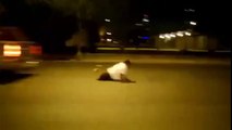 Ce fan des San Antonio Spurs fête la victoire de son équipe à l'arrière d'un pick up qui roue... Il va alors s'éclater sur la route! FAIL !!!