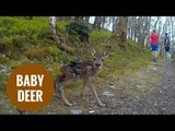 Runners have an amazing encounter with a tiny deer