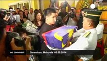 Pilots in their Malaysia Airlines uniforms lined up to pay their respects Tuesday to Captain Eugene Choo Jin Leong.<br/> <br />He was one of the pilots aboard Malaysia Airlines flight MH17 which was shot down over eastern Ukraine in July as it flew from Amsterdam to Kuala Lumpur.<br/> <br />He was given full military honours for the ceremony.<br/> <br />An urn carrying his remains was draped in the Malaysian flag. It was carried by military personnel who handed it over to his sons.<br/> <br />His wife, along with other family members, friends and co-workers attended the somber memorial.<br/> <br />His remains, and those of eight other Malaysians, were brought back from Amsterdam Tuesday.<br/> <br />Fellow pilot, Captain Azlan Abu Bakar, accompanied the bodies.<br/> <br />9. SOUNDBITE (English) FRIEND OF OF LATE CAPTAIN EUGENE CHOO JIN LEONG, CAPTAIN AZLAN ABU BAKAR, SAYING:<br/> <br />"The felling was horrible, all the way for twelve and the half hours from Amsterdam. It was horrible bringing my very close friend. We used to