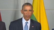 President Obama has reaffirmed America’s commitment to Estonia and other Baltic states under its NATO obligations, in response to concerns over possible Russian aggression.<br /><br /> He was speaking alongside his Estonian counterpart in the capital Tallinn ahead of this week’s NATO summit in Wales, described as the most important since the Cold War in the light of events in Ukraine. <br /><br /> The US president said no settlement was possible as long as Russia was sending troops disguised as separatists.<br /><br /> He also said European members of NATO needed to do their fair share of defence spending to bolster the alliance.<br /><br /> Obama paid tribute to the American journalist Steven Sotloff, murdered by Islamist militants.<br /><br /> Confirming that a video of his beheading was authentic, the president said America’s objective was to degrade and destroy ISIL not just in Iraq but in the region.