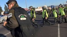 En Argentine, lors d'une manifestation d'ouvriers, un groupe de gendarmes traverse la route. L'un des gendarmes va se jeter volontairement sur le pare-brise d'une voiture qui est en train de rouler !!