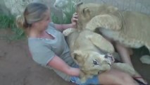 Young Lady Is Getting Mauled By Two Young Lions