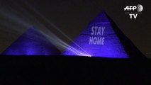 Egypte: Guizeh s'illumine en bleu, avec le message "restez chez vous"