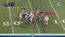 Calvin Johnson's performance during the Detroit Lions' 35-14 win over the New York Giants was incredible. Megatron caught seven passes for 164 yards and two touchdowns. The first was a 67-yard strike after Matthew Stafford juked Damontre Moore in the backfield, with Johnson wide open thanks to some blown coverage in the Giants secondary.