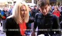 First person to buy iPhone 6 in Perth drops it on live TV when pressured by reporters.