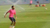 Barcelona, Sep 23 (EFE).- Star striker Neymar and midfielder Rakitic joined the training session Barcelona held on Tuesday to prepare for the Liga match against Malaga the following day. Both players would most likely be ready to play the game after feeling pain during the Blaugrana's encounter against Levante over the weekend. Rafinha Alcántara, however, was given specific work to recover from muscle problems and will not be able to travel with the rest of the team. Once again, Munie El Haddadi and Sandro Ramírez practiced in the morning session. <br /><br /> <br /><br />SHOTLIST: FOOTAGE OF FC BARCELONA TRAINING. <br /><br /> <br /><br />Keywords: efe,football,soccer,barcelona,barça,liga,spain. <br /><br /><br /><br />© EFE 2014. Está expresamente prohibida la redistribución y la redifusión de todo o parte de los contenidos de los servicios de Efe, sin previo y expreso consentimiento de la Agencia EFE S.A.