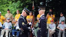 In front of the Tomb of the Unknown Soldier. September 18, 2014 <br />The Tomb of the Unknown Soldier is guarded 24 hours a day, every day of the year, by Tomb Guard sentinels. Sentinels are all volunteers from the 3rd U.S. Infantry Regiment (The Old Guard), headquartered at Fort Myer, Va. The "Old Guard" dates from 1784 and is the oldest active duty infantry unit in the Army. <br /> <br />http://www.arlingtoncemetery.mil/Explore-the-Cemetery/Changing-of-the-Guard