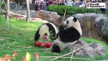 Petit bain de printemps pour la femelle Panda Huan Huan au zoo de Beauval