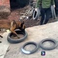 Un chien porte 4 pneus à la fois... efficace