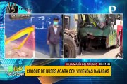 Choque de buses en VMT: dos conductores heridos y vehículo quedó empotrado en vivienda