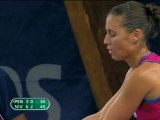 Pauline Parmentier claimed a stunning straight sets 6-4 6-2 upset over Andrea Petkovic at the WTA Luxembourg.