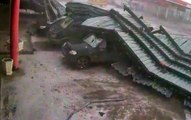 Roof Blown Off Onto Cars Below