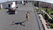 Un drône dérange une fille qui bronze sur un toit d'immeuble!