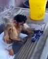 Au Brésil, un homme a filmé un singe capucin en train de faire sa lessive comme un humain. Il frotte, frappe le linge puis le met dans l'eau pour le laver. Le singe semble apprécier son activité, car il n'y a personne qui le force à le faire.