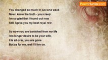 Let's carry on with our merry dance, <br />Ler's not act on the urge to get in each others pants. <br />Let's keep on with this game of innuendo, <br />Let's not be alone and let it all go. <br /> <br />Let's not meet up and ruin the mistique, <br />Let's continue our game of hide and go seek. <br />Let's stay as we are and not take the chance, <br />Yes let's carry on with our funny romance. <br /> <br />(C) Victoria Elizabeth Hughes September 2005<br /><br />Victoria Hughes<br /><br />http://www.poemhunter.com/poem/funny-romance/