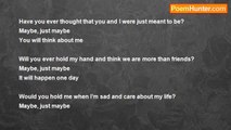 Maybe killing myself wouldn't be so wrong. <br />Ive lived a hard life, it doesnt need to be long. <br />I'm hurt and broken, that no one can see. <br />That the blood from the knife is dripping all down me. <br />Down my arms, through my heart, on my hand. <br />Can't anyone, even comprehend or even understand? <br />This pain is taking over my inside even my out, <br />does anyone even know what the hell I am talking about? <br />I need some help, before it's too late, that I know. <br />Is there anyone that cares enough to take the time to show, <br />Me, the way out through this difficult and painful ride, <br />As my true self I endure to hide. <br />I seem to be restless, cannot bring myself to sleep. <br />It seems im in too far now, way into deep. <br />So maybe just maybe killing myself wouldnt be so wrong, <br />Ive lived this short life, it does not need to be long.<br /><br />Ashley Morrison<br /><br />http://www.poemhunter.com/poem/maybe-just-maybe-2/