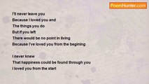 I want you to hold me <br />And never let go <br />I love you so much <br />More than you or I will ever know <br /> <br />It’s bizarre the way we fell in love <br />I cant believe we've actually lasted so long <br />Almost 10 months and many more to go <br />Only falling more and more in love with you as <br />time goes on <br /> <br />You tell me that you love me <br />And I know I can believe you <br />I've never loved anyone but you <br />My heart is now so strong <br />I am completley, undeniably in love with you <br />Nothing can go wrong <br />or pull us apart <br /> <br />I can't wait to feel you next to me <br />I want you to touch me, kiss me <br />And tell me that you love me <br />So I understand i'm finally there <br /> <br />I want to open my eyes <br />And see you by my side <br />God, I still can’t believe <br />I have you in my life <br />I love you Cody <br /> <br />* Please Read Other Poems *<br /><br />Meagan Loves Cody<br /><br />http://www.poemhunter.com/poem/i-can-t-believe-it-2/
