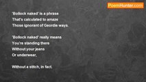 Morality is a disease <br />That brings the Faithful to their knees, <br />They think my bum should feel the birch <br />For smoking cigarettes in Church, <br />So I respond by being crude <br />And singing carols in the nude. <br />It makes them livid, but don't they see <br />I just can't stand hypocrisy! !<br /><br />John Thorkild Ellison<br /><br />http://www.poemhunter.com/poem/the-naked-truth-2/