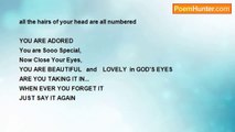 You're not somebody <br />because of who you're around <br />You're not somebody <br />because you're renowned <br /> <br />You're not somebody <br />because you are smart <br />or because of your position <br />or because you will start <br /> <br />or because you have <br />the right clothes <br />the right hair, or right speech <br /> <br />or because you're a scholar <br />or because you can speak <br /> <br />You are somebody <br />because God made you so <br />and there are somethings that <br />He wants you to know <br /> <br />He loves you with an everlasting love <br />your life is important, each one of us <br /> <br />God sent Jesus to die for our sins <br />He bled and died for all of them <br /> <br />When you come to the Lord <br />you will be able to see <br />that he made you for Him <br />in Him you're somebody<br /><br />Debbie Bennett<br /><br />http://www.poemhunter.com/poem/you-are-somebody/