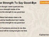 to say good-bye <br />it's a pain thing to do <br />but now it's over <br />and I'm far from you <br /> <br />I wish you could stay <br />but that's nothing new <br />even if your gone <br />I'd never hate anything you do <br /> <br />I miss you already <br />even though your not gone yet <br />but if you had the choice <br />you wouldn't leave I'd bet <br /> <br />I'll talk to you soon <br />but it won't be the same <br />I'll miss your smile <br />I must take the shame <br /> <br />I won't know <br />how it would be <br />but I guess <br />in time we'll see <br /> <br />I hope we meet again <br />but right now I don't know <br />I'll miss you so much <br />but I guess I have to let you go.<br /><br />Katherine Bryce<br /><br />http://www.poemhunter.com/poem/to-say-good-bye-5/