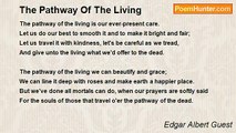 The miser thinks he's living when he's hoarding up his gold; <br />The soldier calls it living when he's doing something bold; <br />The sailor thinks it living to be tossed upon the sea, <br />And upon this vital subject no two of us agree. <br />But I hold to the opinion, as I walk my way along, <br />That living's made of laughter and good-fellowship and song. <br /> <br />I wouldn't call it living always to be seeking gold, <br />To bank all the present gladness for the days when I'll be old. <br />I wouldn't call it living to spend all my strength for fame, <br />And forego the many pleasures which to-day are mine to claim. <br />I wouldn't for the splendor of the world set out to roam, <br />And forsake my laughing children and the peace I know at home. <br />Oh, the thing that I call living isn't gold or fame at all! <br /> <br />It's good-fellowship and sunshine, and it's roses by the wall; <br />It's evenings glad with music and a hearth fire that's ablaze, <br />And the joys which come to mortals in a thousand different ways. <br />It is laughter and contentment and the struggle for a goal; <br />It is everything that's needful in the shaping of a soul.<br /><br />Edgar Albert Guest<br /><br />http://www.poemhunter.com/poem/what-i-call-living/