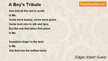 I must be fit for a child to play with, <br />Fit for a youngster to walk away with; <br />Fit for his trust and fit to be <br />Ready to take him upon my knee; <br />Whether I win or I lose my fight, <br />I must be fit for my boy at night. <br />I must be fit for a child to come to, <br />Speech there is that I must be dumb to; <br />I must be fit for his eyes to see, <br />He must find nothing of shame in me; <br />Whatever I make of myself, I must <br />Square to my boy's unfaltering trust. <br />I must be fit for a child to follow, <br />Scorning the places where loose men wallow; <br />Knowing how much he shall learn from me, <br />I must be fair as I'd have him be; <br />I must come home to him, day by day, <br />Clean as the morning I went away. <br />I must be fit for a child's glad greeting, <br />His are eyes that there is no cheating; <br />He must behold me in every test, <br />Not at my worst, but my very best; <br />He must be proud when my life is done <br />To have men know that he is my son.<br /><br />Edgar Albert Guest<br /><br />http://www.poemhunter.com/poem/the-boy-s-ideal/