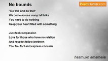 How can love be shaken? <br />When seriously taken <br />How can it be carried away? <br />If wind finds its way <br /> <br />Love mismatch <br />When rally no catch <br />The meaning of friendship <br />Truly to keep <br /> <br />It is good to feel <br />And remain well <br />With whatever attachment <br />It is nice moment <br /> <br />Slight separation <br />Does not mean an end of relation <br />It is consolidation <br />With bond and cementation <br /> <br />I feel sea's warmth <br />And feel fast breathe <br />I feel back to normal <br />Complete human and as woman<br /><br />hasmukh amathalal<br /><br />http://www.poemhunter.com/poem/love-mismatch/