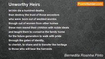 Flooded in the streets <br />were dreams of hopes <br />and pavements of ambitions <br />all seeking somewhere, somehow <br />to reach to the top, <br />and to acquire it all……… <br />walking a few miles <br />they felt they won a marathon, <br />climbing a few steps <br />they thought they had reached the apex, <br />building a new dwelling <br />they thought they had erected a palace, <br />such was the false satisfaction <br />of those unjust minds. <br />A Divine voice asked one of them: <br />have you contented yourself <br />without spoiling the peace of another? <br />have you achieved happiness <br />without depriving the ‘status' of another? <br />have you judged whether you deserved more <br />without giving priority to your selfishness & greed? <br />have you ever respected your brother <br />as much as you pleased your son? <br />'NO', he answered. <br />And the Divine voice answered back: <br />'If your Soul steers not clear of hatred, jealousy and envy, <br />then beggars should try not to be Kings' <br /> <br />(If you don't uphold the dignity of others, <br />you do not deserve dignity yourself- <br />this is the essence of the poem.)<br /><br />Bernedita Rosinha Pinto<br /><br />http://www.poemhunter.com/poem/steer-clear-your-soul/