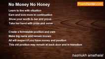 Not all people can have an art to maneuver <br />Turn odd into misfortune and prove good earner <br />They can earn out from dust <br />As people put so much trust <br /> <br />It takes time to earn good repute <br />You have to think and salute <br />To good efforts and care taken <br />In following the honest ethics in turn <br /> <br />Yes. Money is needed to survive <br />Without it, you can‘t comfortably live <br />People may argue in disfavor <br />Money earns you great honor <br /> <br />It is different matter how you earned? <br />How you fought against poverty and turned <br />Money earned by hard way <br />Gives you happiness in long way <br /> <br />We all know poverty is curse <br />Money helps of course <br />Not all people can be lucky <br />But it is all important to think about money<br /><br />hasmukh amathalal<br /><br />http://www.poemhunter.com/poem/about-money-2/