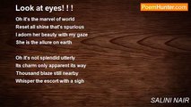My form is not prolific <br />My form is not abundant <br />My form is not an enigma <br />My form is not charismatic <br />But a petal that fall behind <br /> <br />My anguish blend with shadows <br />My whisper pert and gigantic <br />My grieves shadow the future <br />Benevolent thought that phi antic <br />Empty life that is lunatic <br /> <br />Nature grin in front on a cart <br />Wonder glimpse in small eyes of mine <br />On a little cart eternal <br />Praise the boon that part me on earth <br />With the widen eyes of sorrows <br /> <br />A thunder hit inside and stoops all thought <br />If she grieve for a lazy lot <br />What would be the future of this trot? <br />Widen eyes that blink in shock <br />But she grins with all flock! ! ! ! ! ! ! ! ! ! ! <br /> <br />©2014 SALINI.S.NAIR. All rights reserved.<br /><br />SALINI NAIR<br /><br />http://www.poemhunter.com/poem/your-eyes-183/