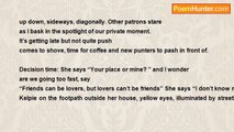 The only way <br />to walk along the beach <br />is barefoot. <br /> <br />For one golden sandy moment <br />your footprint signature <br />is a part of the beach; <br />a bayside Hollywood Boulevard. <br /> <br />Hear the shore break; <br />coooooooooh <br />tshhhhhhhhhh, <br />cover your toes. <br /> <br />Your path is unique <br />tracks now disappear <br />no-one can follow. <br /> <br />But a couple <br />of distinct journeys <br />can match each other_ <br /> <br />stride by stride <br />beside...<br /><br />Pete Dowe<br /><br />http://www.poemhunter.com/poem/walk-with-me-on-water/