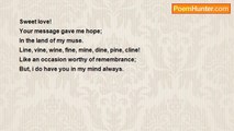 Life, <br />You are my hope; <br /> <br />Love, <br />You are my peace; <br /> <br />Nature, <br />You are my joy! <br /> <br />Peace, <br />You are my light; <br /> <br />Muse, <br />With the aroma of the truth.<br /><br />Edward Kofi Louis<br /><br />http://www.poemhunter.com/poem/you-are-my-hope-2/