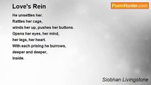 2nd time around <br />You hold back, <br />hesitate, procrastinate. <br />Truth be told - <br />perhaps you're too old. <br /> <br />The days of jumping in <br />regardless, <br />Or falling in, <br />doe eyed and blinded <br />by the light in their eyes, <br />by the smile on their face, <br />by the words on their tongue, <br />by the sweetness on their lips <br />has long passed, <br />usurped by opened eyed caution. <br /> <br />Pragmatic or is that <br />phlegmatic attitudes <br />curb enthusiasm, <br />protect the heart <br />yet strangle the love <br />ready to live. <br /> <br />Siobhá Livingstone<br /><br />Siobhan Livingstone<br /><br />http://www.poemhunter.com/poem/2nd-time-around/