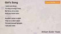 SHE that but little patience knew, <br />From childhood on, had now so much <br />A grey gull lost its fear and flew <br />Down to her cell and there alit, <br />And there endured her fingers' touch <br />And from her fingers ate its bit. <br />Did she in touching that lone wing <br />Recall the years before her mind <br />Became a bitter, an abstract thing, <br />Her thought some popular enmity: <br />Blind and leader of the blind <br />Drinking the foul ditch where they lie? <br />When long ago I saw her ride <br />Under Ben Bulben to the meet, <br />The beauty of her country-side <br />With all youth's lonely wildness stirred, <br />She seemed to have grown clean and sweet <br />Like any rock-bred, sea-borne bird: <br />Sea-borne, or balanced on the air <br />When first it sprang out of the nest <br />Upon some lofty rock to stare <br />Upon the cloudy canopy, <br />While under its storm-beaten breast <br />Cried out the hollows of the sea.<br /><br />William Butler Yeats<br /><br />http://www.poemhunter.com/poem/on-a-political-prisoner/